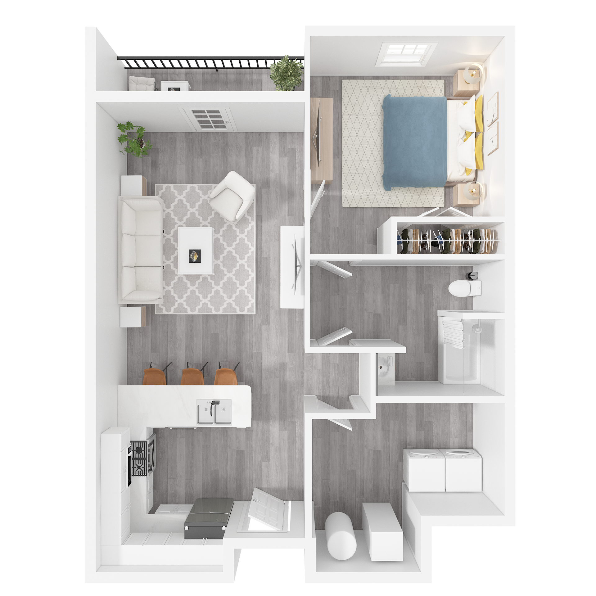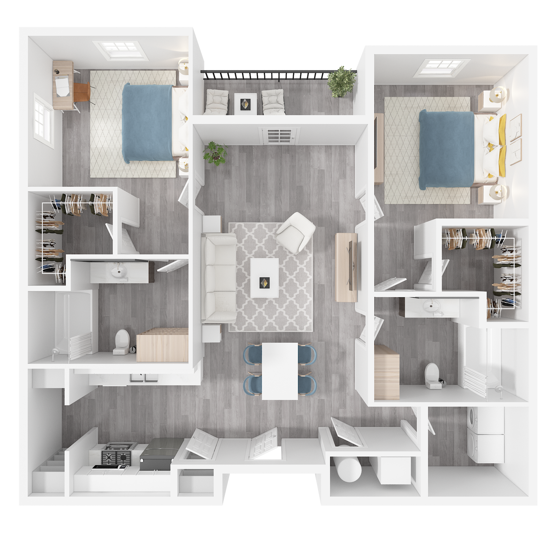 Our one, two and three-bedroom living spaces are appointed with granite countertops, white cabinetry, built in microwaves, walk-in closets, laundry room with washer dryer hook-ups and private balconies and patios. Discover more about our luxury living spaces in our Property Details area.