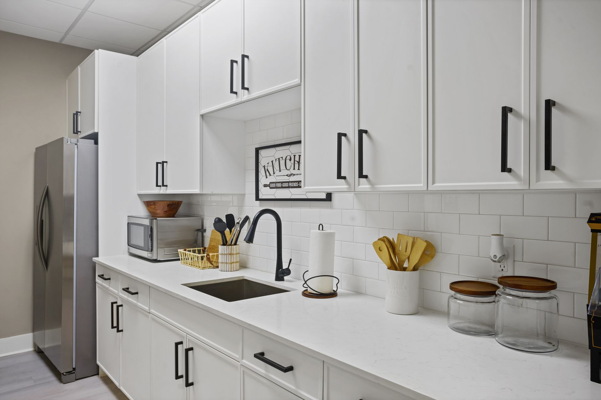 Our one, two and three-bedroom living spaces are appointed with granite countertops, white cabinetry, built in microwaves, walk-in closets, laundry room with washer dryer hook-ups and private balconies and patios. Discover more about our luxury living spaces in our Property Details area.
